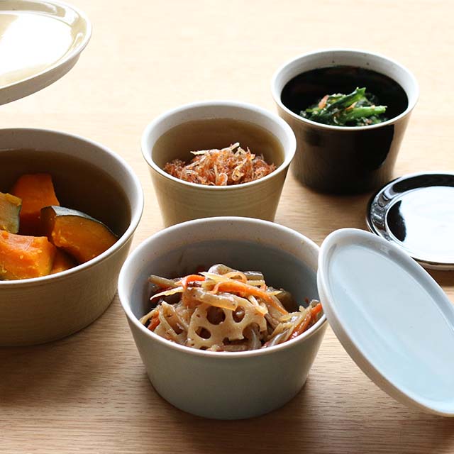 Many people use plastic storage containers for meals for family members who come home late, single-person dining, or storing leftover dishes and prepared foods, often serving them directly to the table. But what we really want is to transfer food to attractive dishes and create a relaxing dining atmosphere. With this in mind, we created these Hasami-yaki storage bowls that serve three purposes: storage, reheating, and serving.