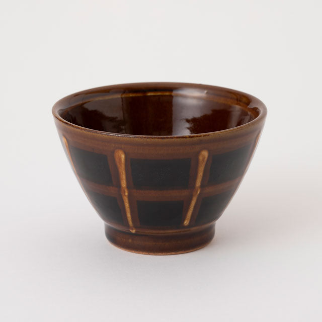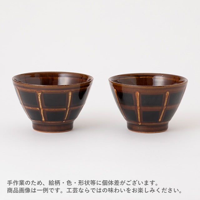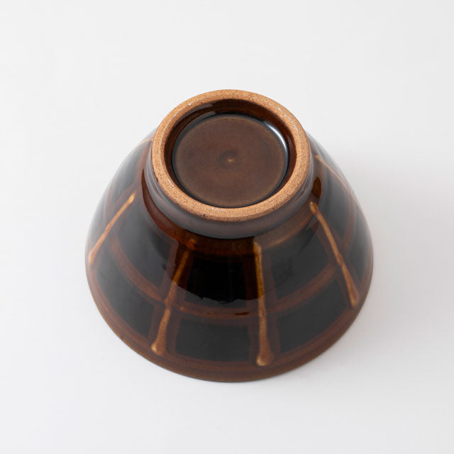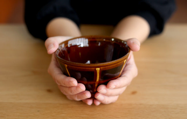 The Good Day Rice Bowl series offers various patterns created with kilns from across Japan. This 'Amber-White Grid' was created with Shotoen in Toki City, Gifu Prefecture. While primarily focused on Japanese pottery, this Mino kiln's approach is characterized by an experimental spirit and willingness to explore diverse styles.