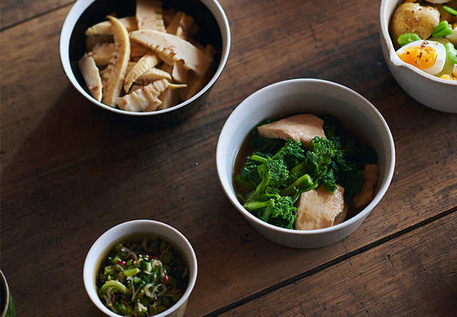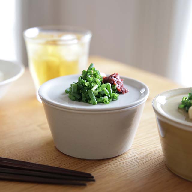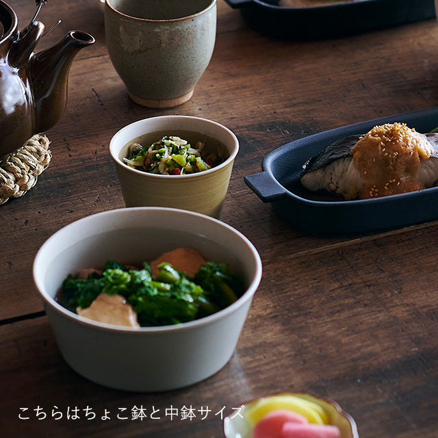 Many people use plastic storage containers for meals for family members who come home late, single-person dining, or storing leftover dishes and prepared foods, often serving them directly to the table. But what we really want is to transfer food to attractive dishes and create a relaxing dining atmosphere. With this in mind, we created these Hasami-yaki storage bowls that serve three purposes: storage, reheating, and serving.