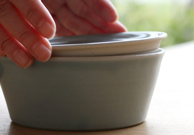 To achieve the high airtightness required for storage containers, Hasami was chosen as the production area. The material used is porcelain with low breathability and water absorption, and it was fired using a technique called "co-firing" at a dough manufacturer in Hasami with one of the highest molding precision. Co-firing, which is used in the manufacture of teapots, etc., suppresses the difference in clay shrinkage that occurs during firing by firing the lid and body together, making it possible to minimize gaps.