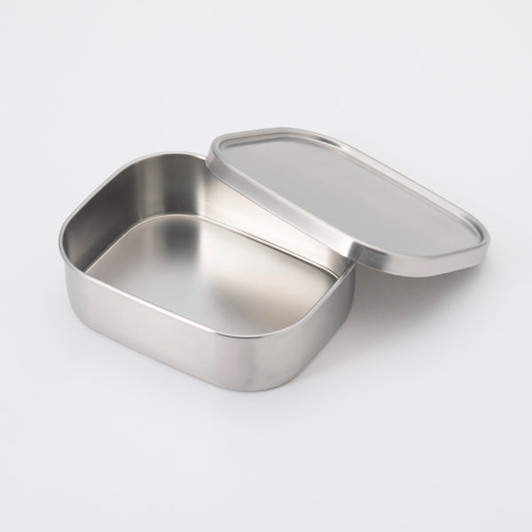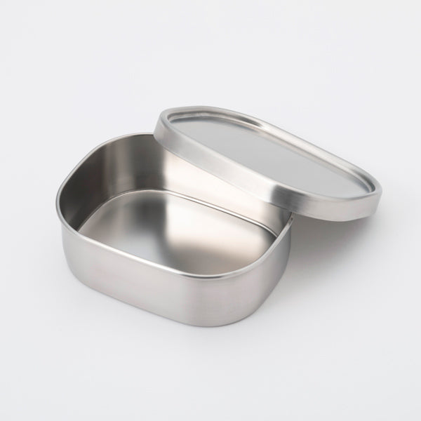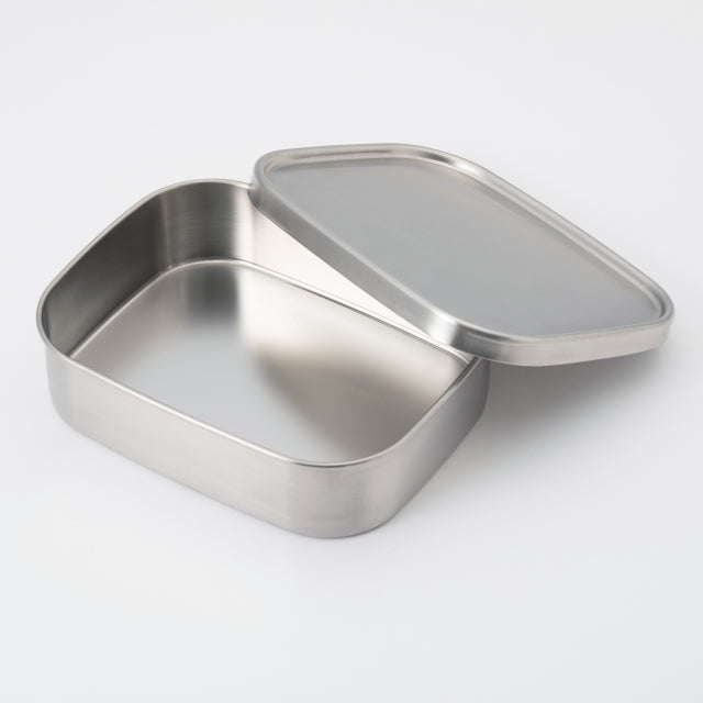 This square food container is made by Aizawa Workshop in Tsubame City, Niigata Prefecture, an area renowned for metalwork and Western tableware production. Stainless steel food boxes resist colour and odour transfer, and their excellent heat conductivity allows for quick cooling when placed in the refrigerator or freezer. The silicone gasket provides confidence when storing simmered dishes that might leak. It also includes a securing rubber belt, making it suitable for use as a lunch box.
