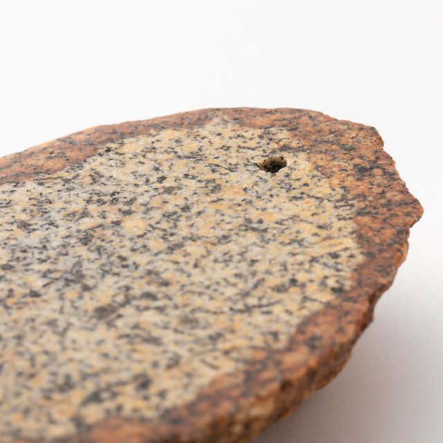 This substantial incense stand is made from a cross-section of stone. Stick incense can be inserted into the hole at the edge. Its weight prevents lit incense from falling over, while the wide cross-section effectively catches ash. Fully washable and easy to maintain, it's designed for long-term use.