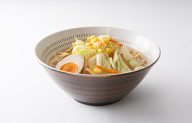 We've made it deeper than regular ramen bowls, creating a design that prevents spilling even with generous amounts of ingredients like vegetable-packed ramen.
