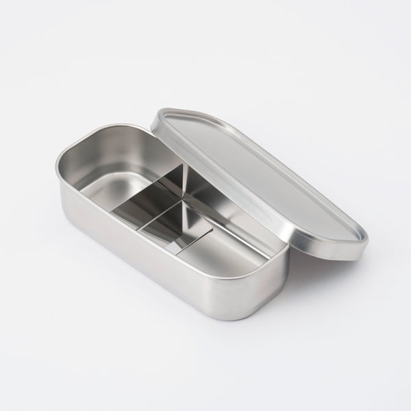 This rectangular lunch box comes from Aizawa Workshop in Tsubame, Niigata Prefecture – a city renowned for metalwork and Western tableware production. The stainless steel construction resists staining and odour absorption, ensuring long-lasting, hygienic use.The silicone gasket seal provides confidence when packing dishes with sauce or liquid, whilst the elongated shape prevents rolling over in your bag.