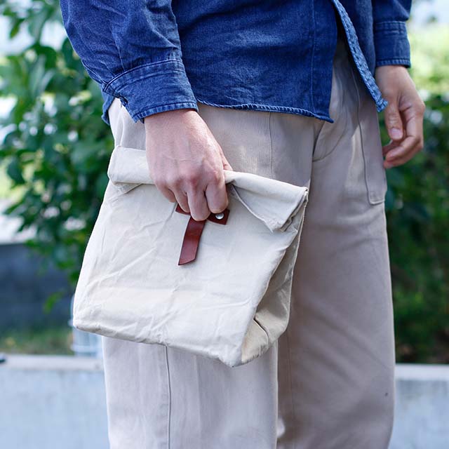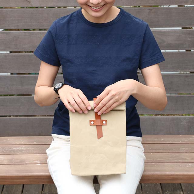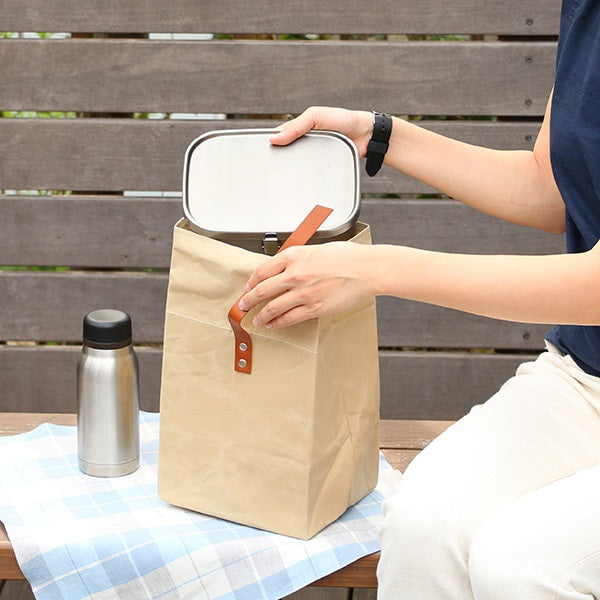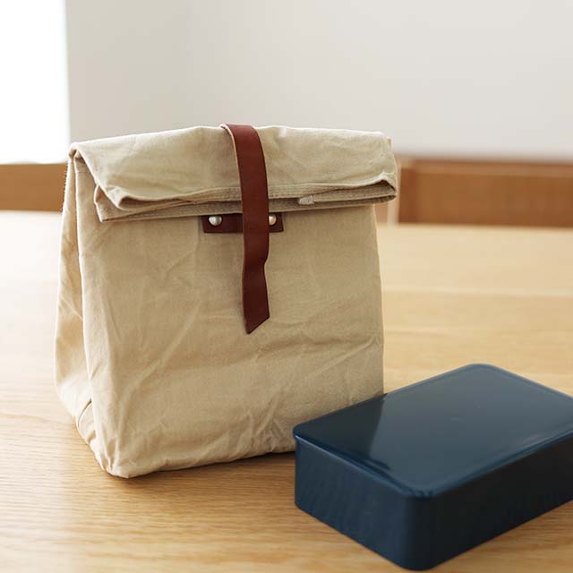 In the West, you'll occasionally spot people carrying kraft paper lunch bags. Inspired by this, BAGWORKS has created a lunch bag that captures that same casual aesthetic. The body is made from heavy cotton treated with paraffin for water resistance, whilst the closure features genuine leather tanned with vegetable tannins. Perfect for work commutes or weekend picnics alike.