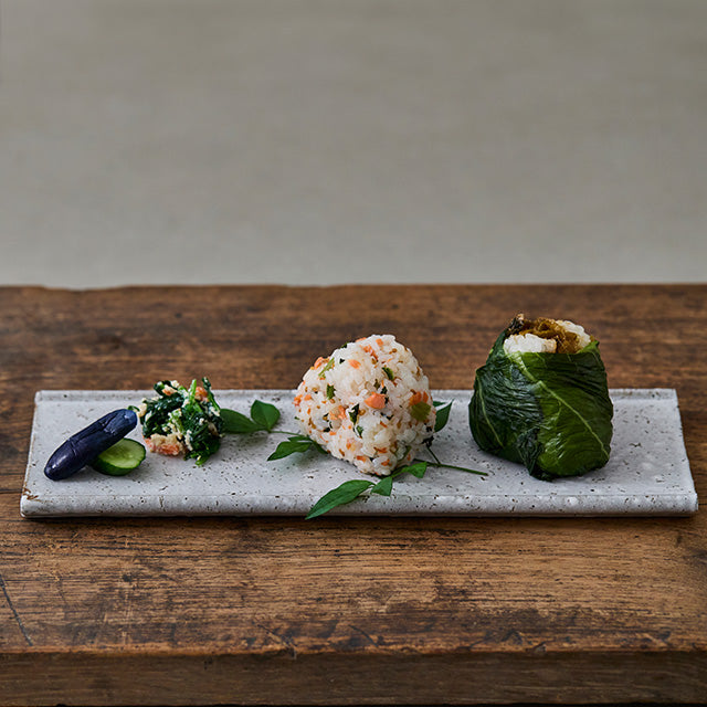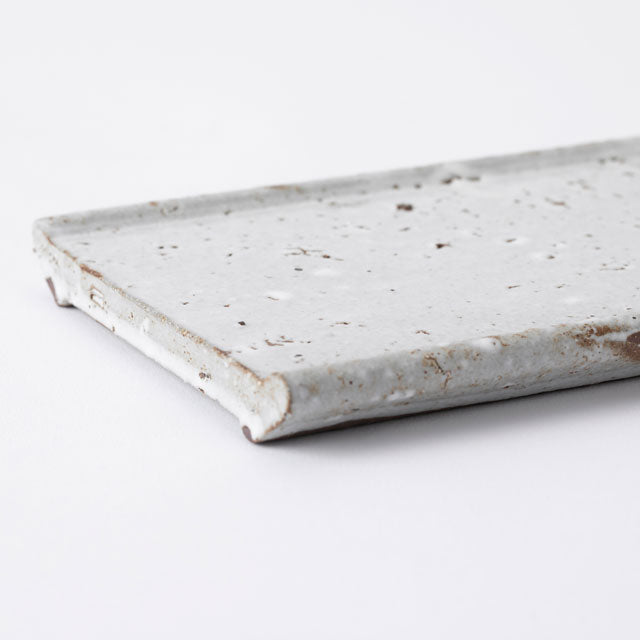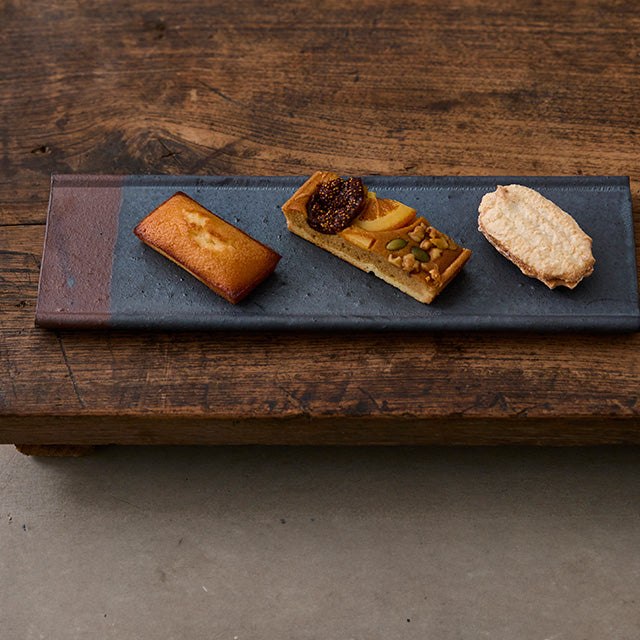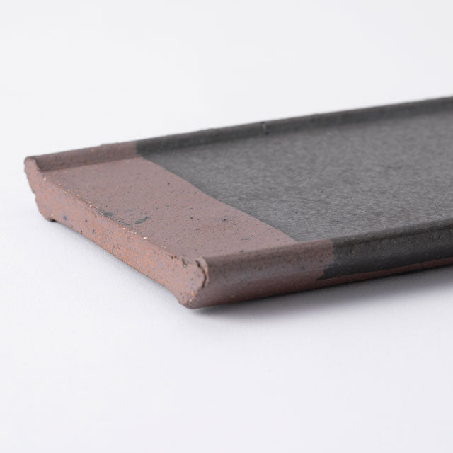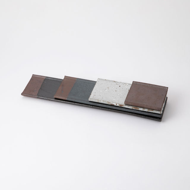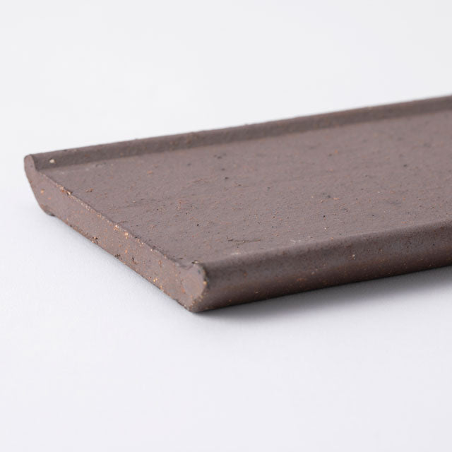Echizen tile ware is made from clay harvested in the Hokuriku region. By utilizing the original character of the clay with minimal modification, each piece achieves a unique expression and texture - no two are alike. With its warm earthen expression and gentle curves at both ends reminiscent of roof tiles, it creates a somehow comforting presence. Like tiles that have harmoniously blended into Echizen's landscape as part of the townscapes where people live, these pieces harmonize with various dining tables. They complement both Japanese and Western cuisine beautifully, and pair exceptionally well with sweets like cakes. Beyond dining, they can also be used as decorative display stands for interior styling.