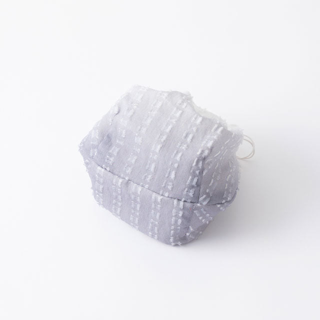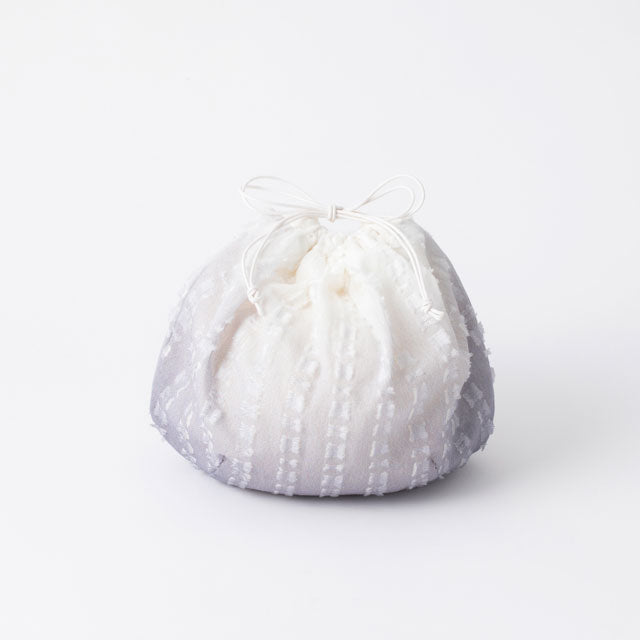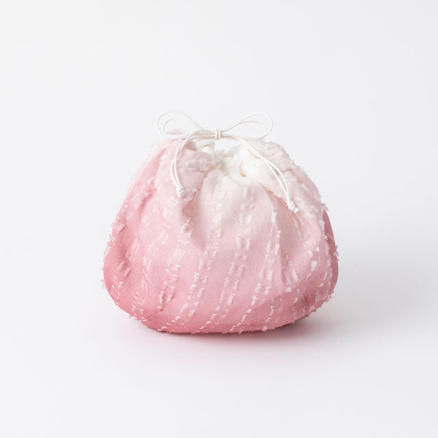 This pouch is made from cut dobby fabric by Banshu Ori, which is known for its thin fabrics such as shirting. The blurred pattern adds a touch of glamour. It is a convenient size for organizing cosmetics and small items. The gathered fabric gives it a soft and light finish.