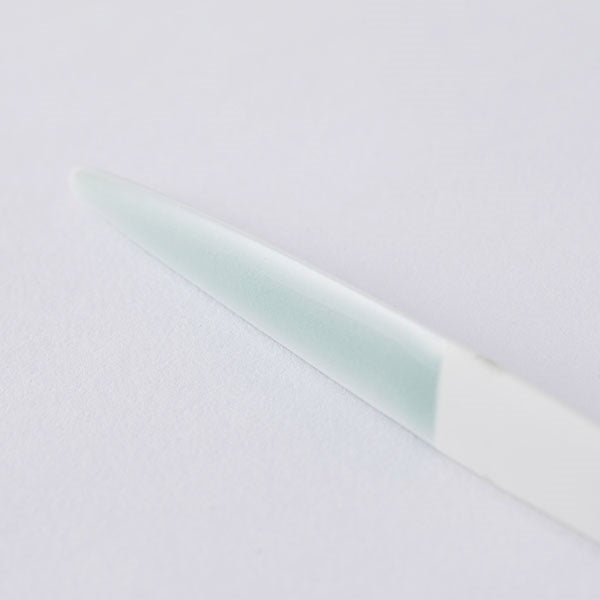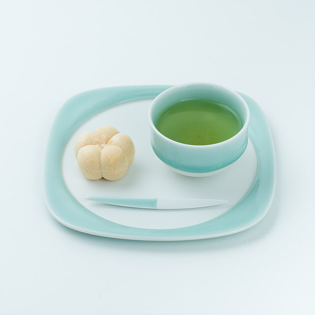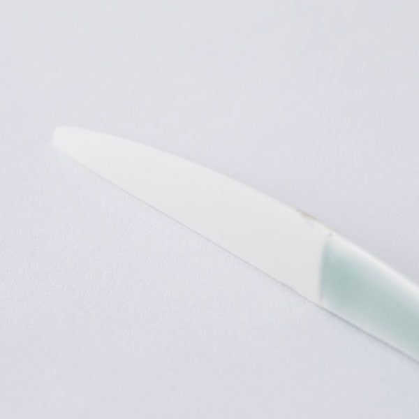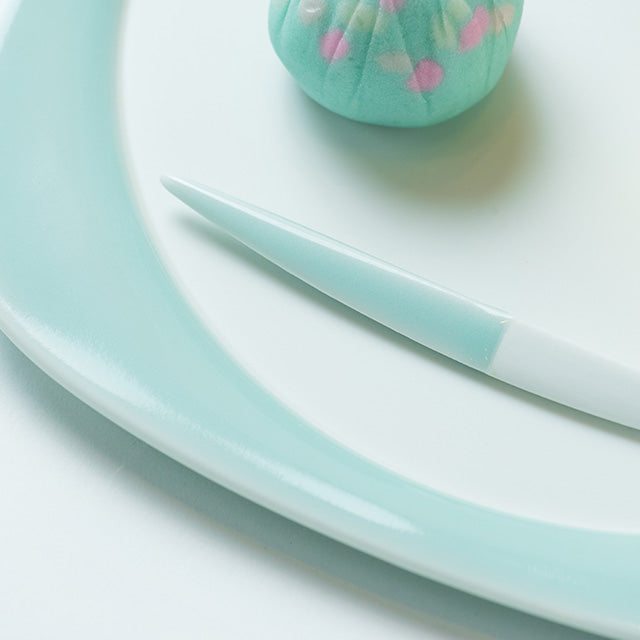 A Nabeshima celadon cake fork crafted by Kosen Kiln, a Nabeshima-yaki pottery house. The high-purity celadon stone used in the glaze is a rare material found only in Ōkawachiyama, Imari. Highly translucent, when layered over pure white porcelain clay, it reveals a beautiful jade-like blue-green colour.