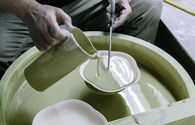 Kosen Kiln descends from a lineage entrusted with celadon production and painting for over 300 years, and remains renowned today for the beauty of its celadon. This beauty is sustained by natural celadon stone, found exclusively in Ōkawachiyama, Imari - where Kosen Kiln is located. When this rare stone is finely crushed, dissolved in water to create a glaze, and applied to white porcelain before firing, a luminous celadon colour emerges.