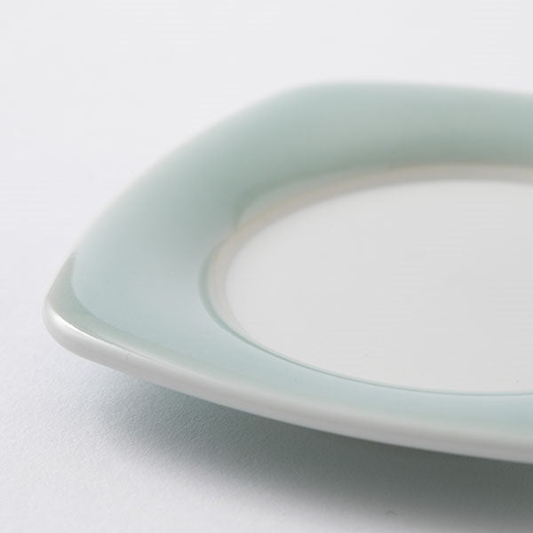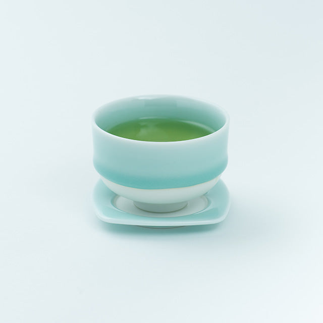 A celadon tea saucer from Kosen Kiln, a Nabeshima-yaki pottery house. The high-purity celadon stone used in the glaze is a rare material found only in Ōkawachiyama, Imari. It is characterised by its exceptional translucency and beautiful jade-like blue-green colour.