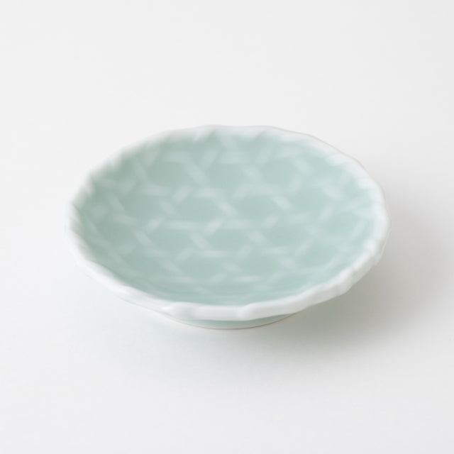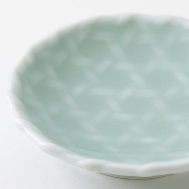Nabeshima Kosen Kiln Blue Celadon Basket Weave Small Dish