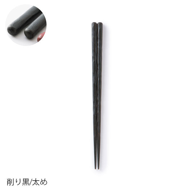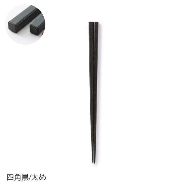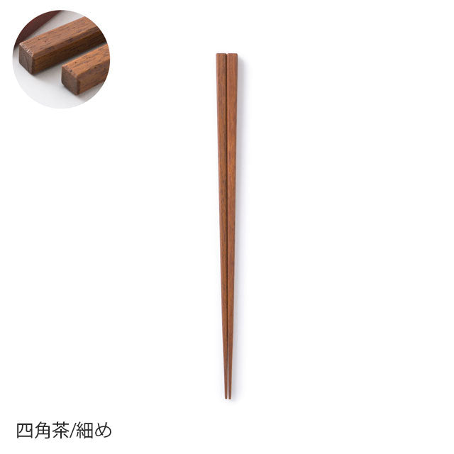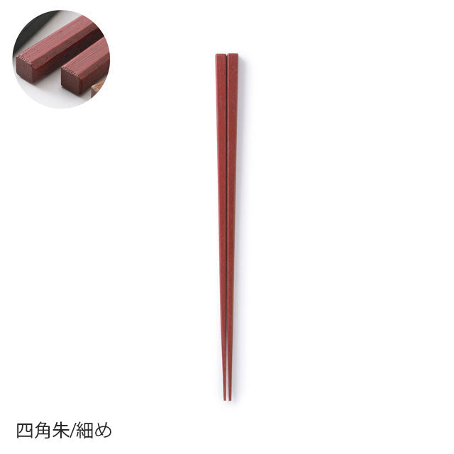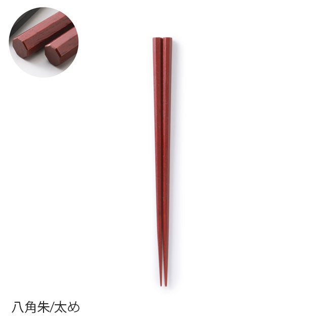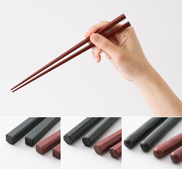 These chopsticks are made in Wakasa, Fukui Prefecture, the number one chopstick-producing region in Japan. The tips of the chopsticks have been rounded off to make them less slippery. After using a technique called "wiped lacquer," which involves repeatedly applying lacquer and wiping it off with a cloth, the chopsticks are finished with a urethane coating to increase durability. We are confident in these chopsticks, which were created after much experimentation and consideration of what truly makes a good pair of chopsticks. Please choose the shape and thickness to suit your hand size and preferences.