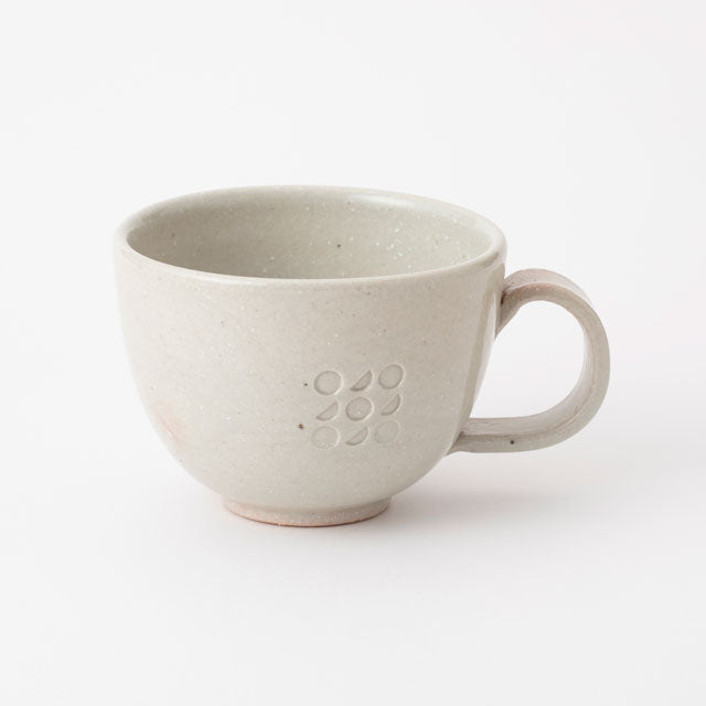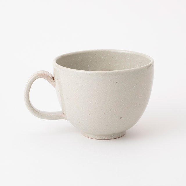 This mug cup has a wide opening and is just the right size for those with smaller hands to hold by wrapping both hands around it. With a perfect capacity of 200ml, it's ideal for tea time - filling it with plenty of coffee or tea to enjoy the aroma - as well as for serving soups and potages. The handle has a gentle curve, allowing for a secure grip whether you hook your fingers from the outside or thread them along the body of the cup. We recommend collecting a family set by combining different colored mugs with plates and sake vessels from the same series.