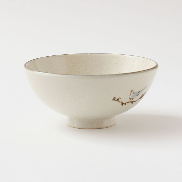 The flower and bird patterns on each rice bowl are hand-stamped and finished individually, with their blurs and fades creating a lovely expression.
